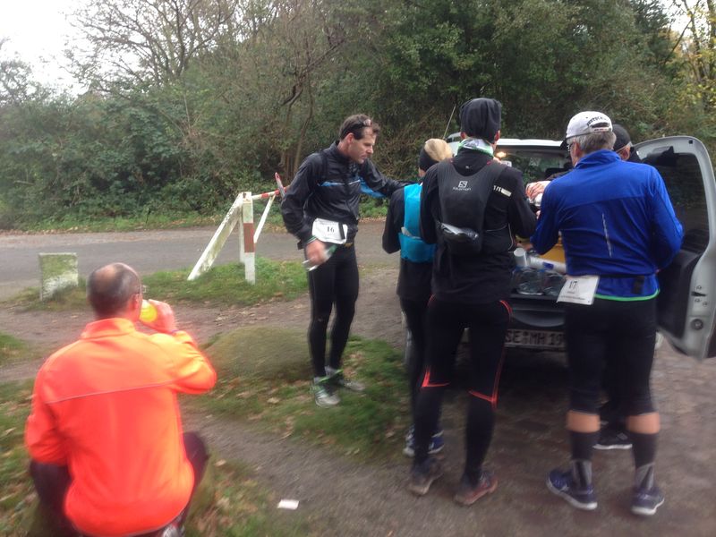 Hier findet das ausführliche Briefing statt. Jeder Läufer bekommt einen Stadtplan mit eingezeichneter Strecke. Den Track konnte man sich auch im Vorfeld auf sein GPS-Gerät laden. Manfred Hopp steht mit seinem PKW bereit, Gepäck zum Ziel zu transportieren.