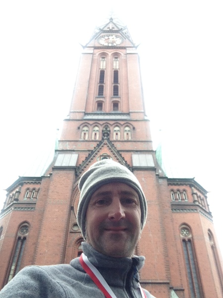 Duch die Stadtteile St. Georg und Hohenfelde laufen wir schließlich auf die Uhlenhorst. Dort an der St. Gertrudskirche steht die Luther-Eiche, die ihm zu Ehren, an seinem 400. Geburtstag im Jahre 1883 gepflanzt worden ist. Dort schlage ich nach einem erlebnisreichen Lauf an - und bin im Ziel!