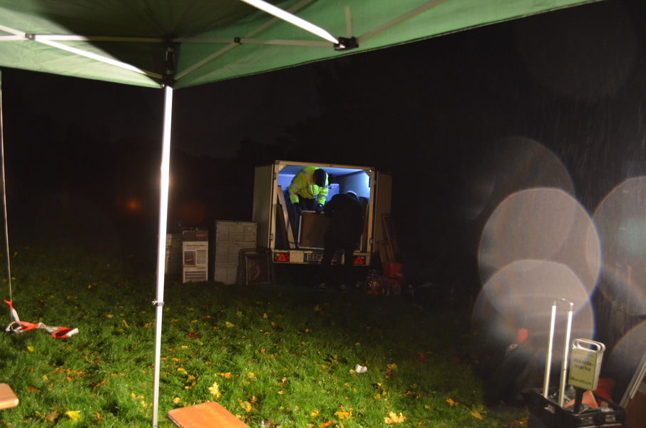 Die anderen Helfer tauchen kurz später auf, der Aufbau geht zügig voran.