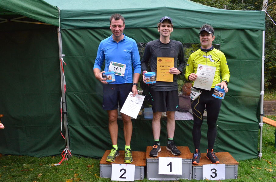 Siegerehrung der Männer im Marathon: 1. Mirko Peters in 3:07:35 2. Sven Peemöller in 3:17:26 3. Daniel Breuer in 3:17:59
