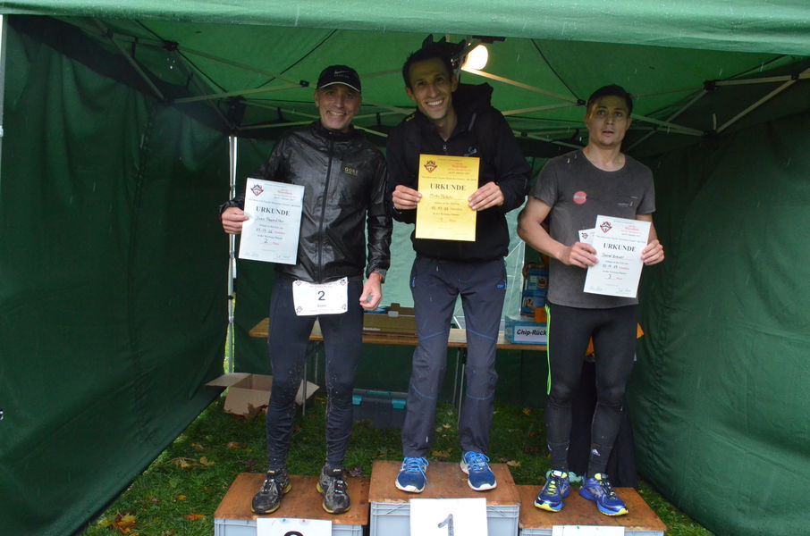Siegerehrung der Männer 11km: 1. Andrew Christoffelz in 0:55:34 2. Michael Schiener in 0:57:05 3. Alpay Solmaz in 0:57:15 Milde lächelnd daneben steht Luisa.