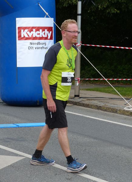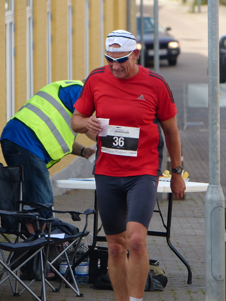 43 Langstreckenläufer starteten auf der Marathondistanz. Die Laufstrecke war sehr schön mit z.B. Abschnitten an der Ostsee und an einem See bei Nordborg. Allerdings war die Strecke recht hügelig und kostete teilweise enorm viel Kraft. Der Untergrund wechselte ständig und der ganze Lauf erinnerte vom Schwierigkeitsgrad an die auf Fünen ausgerichteten Biermarathonveranstaltungen von Michael Nielsen. Das Thermometer kletterte auf 20 Grad, die Sonne zeigte sich erheblich mehr als der Wetterbericht angekündigt hatte und es wehte nur ein ganz schwacher Wind.