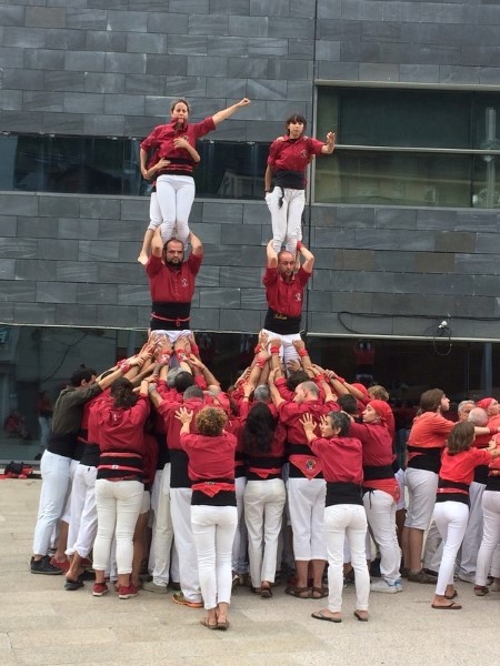 Eine örtliche Sportgruppe führt beeindruckende Kunststücke vor.