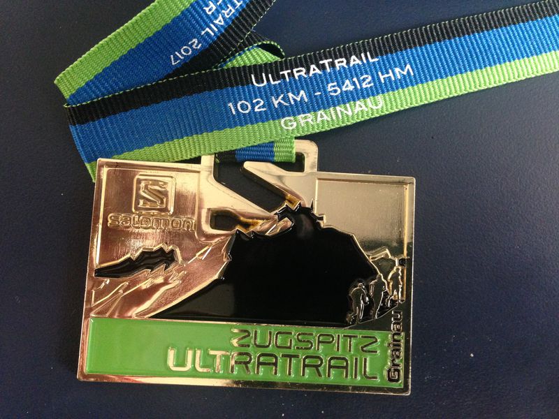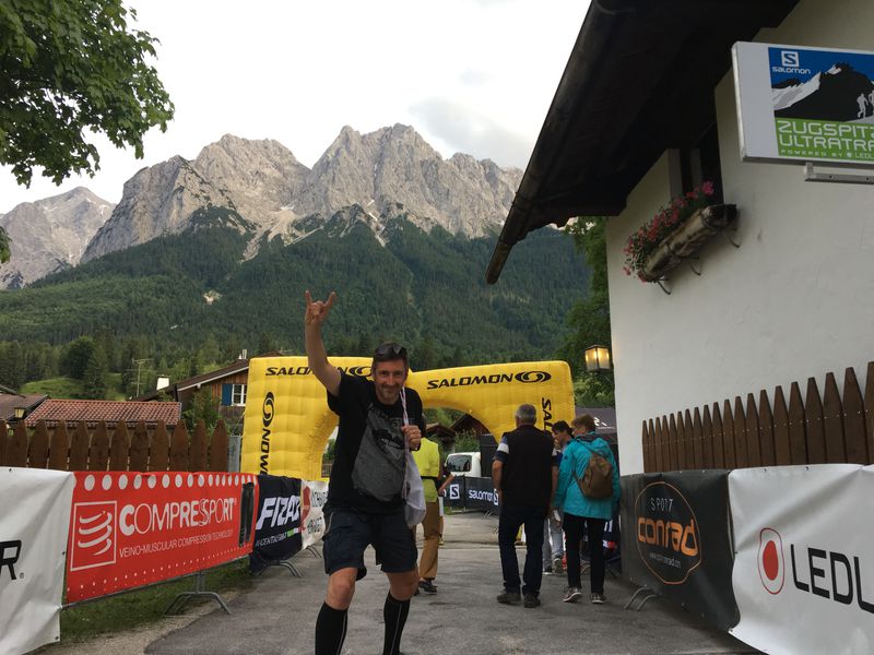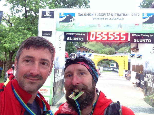 Jetzt das finale Stück, runter nach Grainau. Unterwegs fängt's an zu dämmern und ich schalte meine Stirnlampe aus. Die Nacht weicht, der Tag kommt und wir erreichen nach 5412 Metern bergauf, 5412 Metern bergab und einer Distanz von 101.6 Kilometern nach 22:36:48,6 Stunden um 05:54 Uhr am Sonntagmorgen das Ziel!