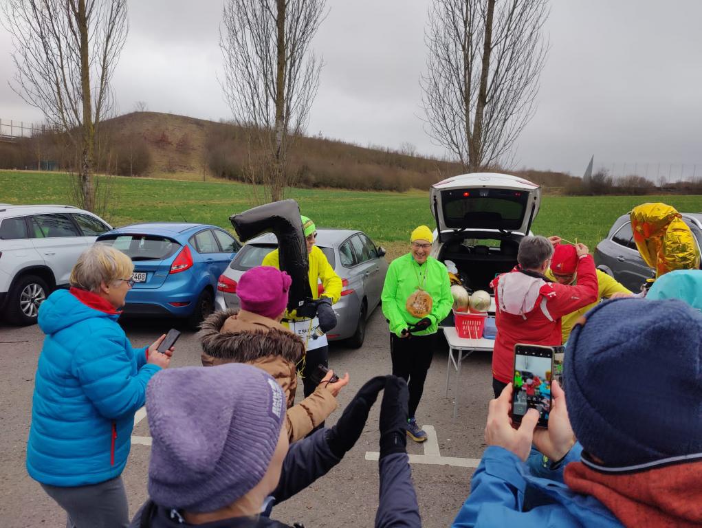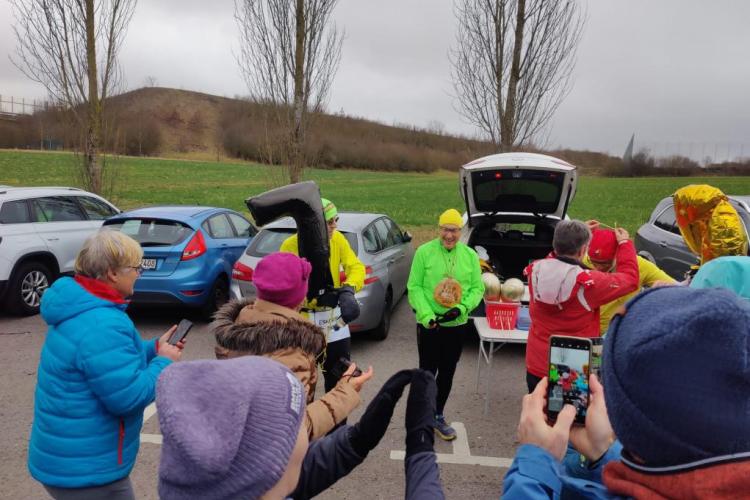 Wer hätte gedacht, dass sich die „Runde um Rutesheim“ (RuR) zu solch einem Dauerbrenner entwickelt? Als Birgit Fender am 10.11.2019 zum runden Geburtstag von Ihrem Norbert einen Marathon organisierte, war es als eine einmalige Aktion geplant. Zwei Runden um Rutesheim, von Micheal Weber vermessen, waren es und die Überraschung für Norbert war gelungen. Nach dem Lauf wurde noch gefeiert. Es kam Corona und die Laufmöglichkeit in Rutesheim bot sich an. Mit Rahmenstartzeit und schöner Laufstrecke ein attraktives Angebot, das seine Fans hat. Als sich dann noch eine WhatsApp Gruppe gebildet hatte, wurde die Terminfindung sehr einfach. Sobald sich mindestens 3 Teilnehmer fanden, wurde Norbert informiert und er schrieb den Lauf auf seiner Homepage aus. Am 06.01.2024 fand nun der 60. RuR statt.
