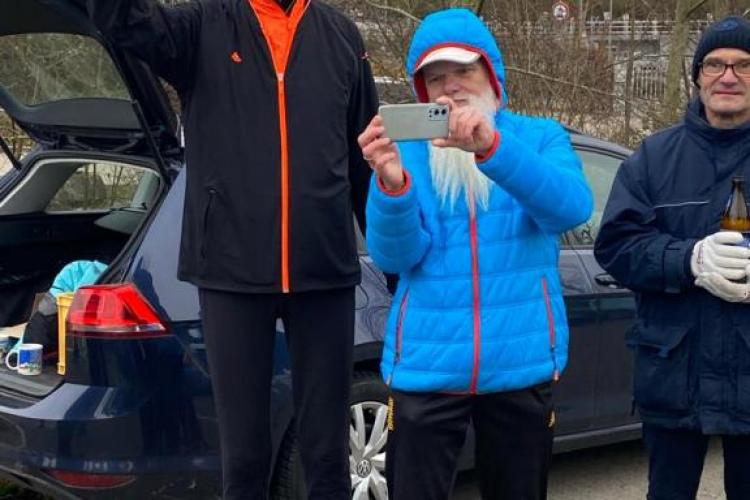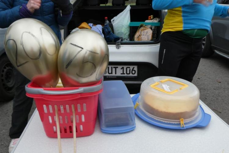 Was mich bei meinem Jubiläumslauf besonders erstaunt und gefreut hat, war die Anteilnahme und die sehr schöne kleine Feier nach dem Lauf. Klaus und ich hatten für Bier, Sekt, Snacks und Kuchen gesorgt. Unsere Lauffreunde haben mit uns gefeiert und einen schönen Rahmen für den Jubiläumslauf geschaffen.