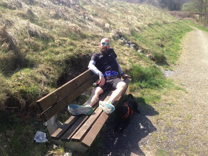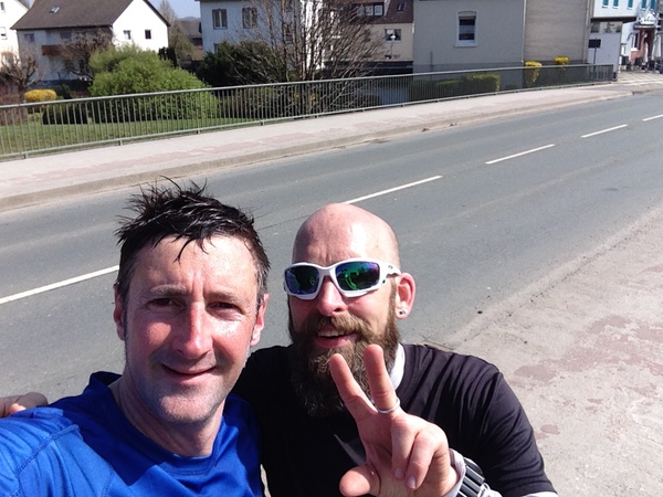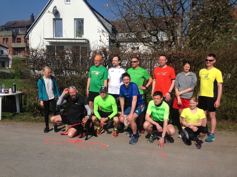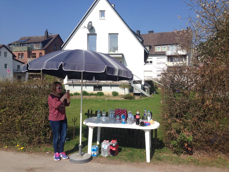 tart und Ziel war in der Jahnstraße zwischen Turnhalle und Schwimmbad. Letzteres beherbergt auch eine öffentliche Toilette und konnte bei Bedarf für 3,- Euro zum duschen/schwimmen genutzt werden. Der Verpflegungstisch wurde am Rande eines privaten Grundstücks aufgebaut. Dort war durch eine Naht im Teer, auch Start und Ziel gekennzeichnet.