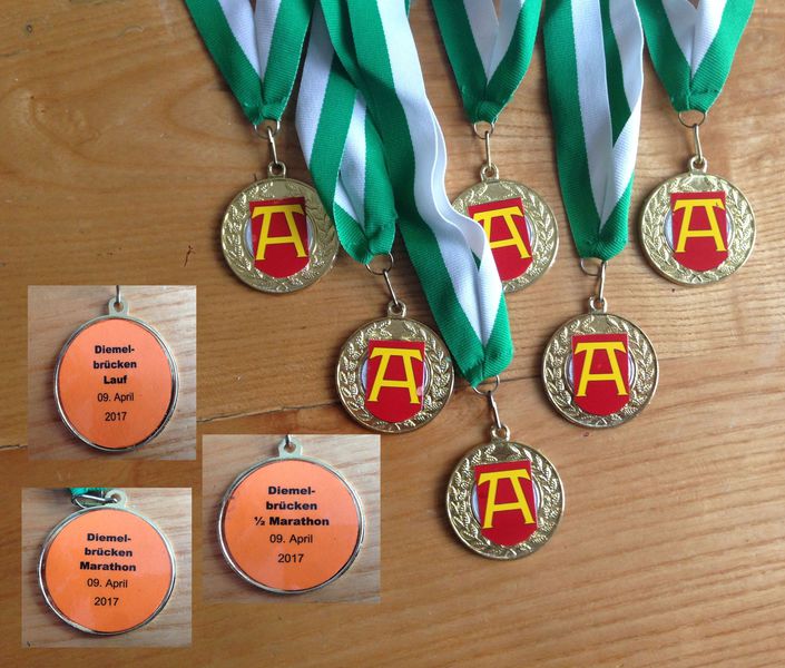 Für alle Läufer über die unterschiedlichen Distanzen gab es liebevoll gestaltete Urkunden und Medaillen. Diese zierte auf der Vorderseite das Marsberger Stadtwappen, auf der Rückseite die gelaufene Strecke. Auf der Urkunde war eine historische Postkarte mit DIEMELBRÜCKEnmotiv abgebildet.