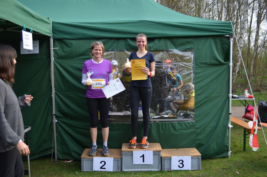 Siegerehrung der Frauen, 11km Platz 2: Astrid Blumenthal in 1:07: Platz 1: Katja Dürkop in 1:02:45 Platz 3: -