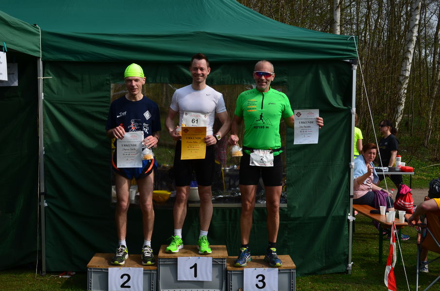 Siegerehrung der Männer, Marathon Platz 2: Stephan Walter in 3:10:28 Platz 1: Mischa Müller in 2:59:22 Platz 3: Sven Peemöller in 3:13:15