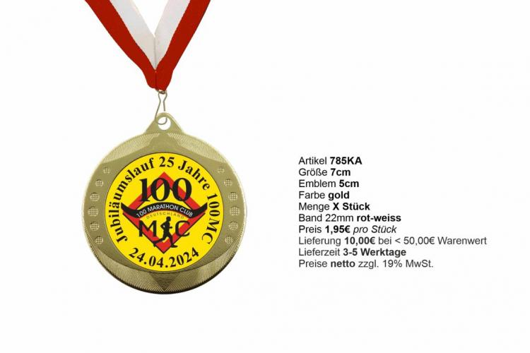 Wir möchten noch einmal auf die Möglichkeit hinweisen, 100MC-Jubiläumsmedaillen für die Finisher bestellen zu können.