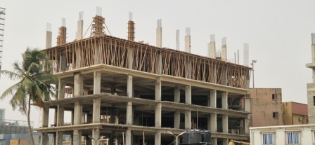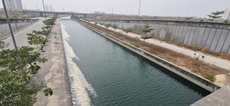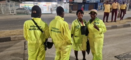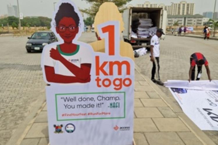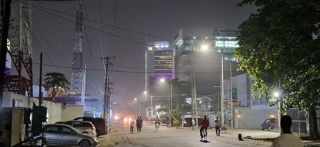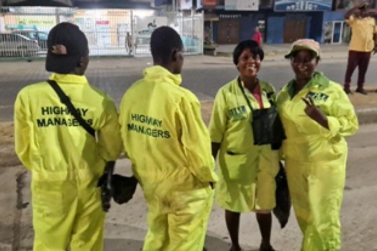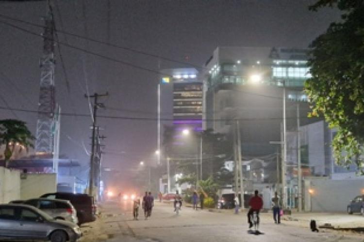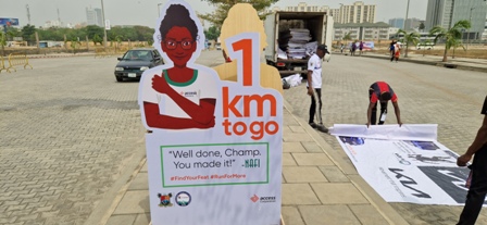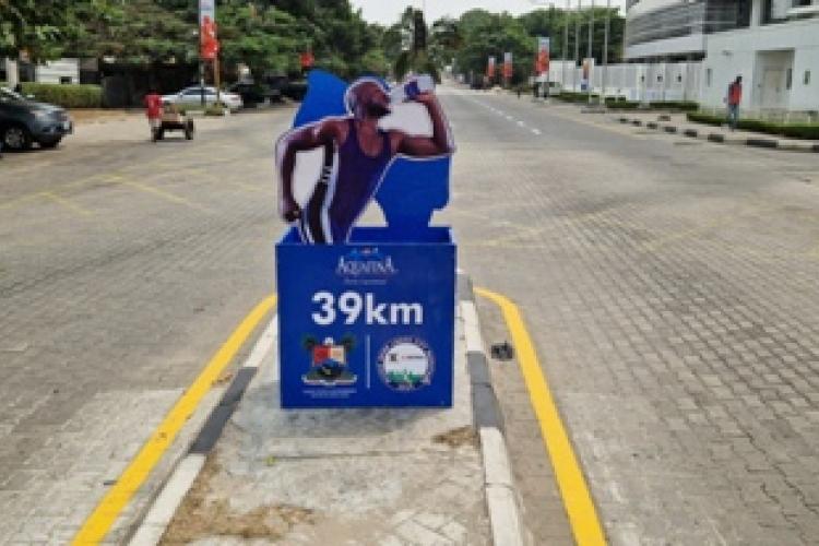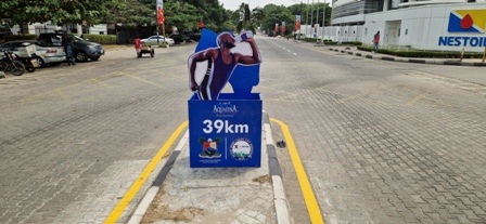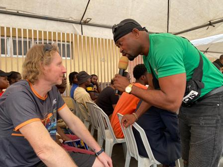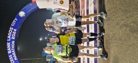 Am Freitag erkundeten wir mit Klaus den Zielbereich zu Fuß, denn das Hotel war bei dieser Punkt-zu-Punkt-Strecke so gewählt, dass es nur 2 Kilometer vom Ziel entfernt war. Der Zielbereich und der letzte Kilometer befanden sich in einem abgesperrten Areal, das mit breiten Straßen, Kanälen, Kreuzungen mit Tunneln auf verschiedenen Ebenen angelegt wird. Dort entstehen Geschäftsgebäude, Hotels, Wohnungen für Betuchte. Am Tor ließ man uns nach Rücksprache mit dem Security-Vorarbeiter durch, damit wir uns schon mal an dem letzten Anstieg erfreuen konnten. Den bin aber von uns Dreien nur ich gelaufen, denn Doris und Klaus wurden mit den vielen 10-Kilometerläufern durch ein anderes Tor geleitet und liefen seitlich auf das Ziel zu. Abends gab’s wieder Pizza und im Club war Party bis 4 Uhr morgens. Das war unsere Weckzeit, denn der Start war für 6:30 angemeldet und wir mussten ja noch Taxi fahren. Das Hotelfrühstück hatten wir abgesagt, um Zeit zu sparen. Die „verschwendeten“ wir dann mit der Wartezeit aufs Taxi, denn so sicher funktioniert UBER in Lagos nicht. Die Fahrer bekommen den Zielort bei der Buchung nicht mitgeteilt, damit sie Kurzstrecken nicht einfach wegblocken. So findet meistens noch ein Telefonat zwischen Fahrer und Kunden statt, wohin denn die Fahrt gehen soll. Nun brachte der Fahrer uns also Richtung Startbereich und irgendwann standen wir im Stau, denn die Strecke war schon abgesperrt. Wir liefen also die letzten paar hundert Meter zur Startlinie. Als wir 6:08 Uhr ankamen und unser Startfoto machen wollten, hieß es, wir könnten direkt loslaufen, denn der Start wäre kurzfristig auf 6:00 Uhr vorverlegt worden und die Läufer bereits unterwegs. That’s Africa 3.