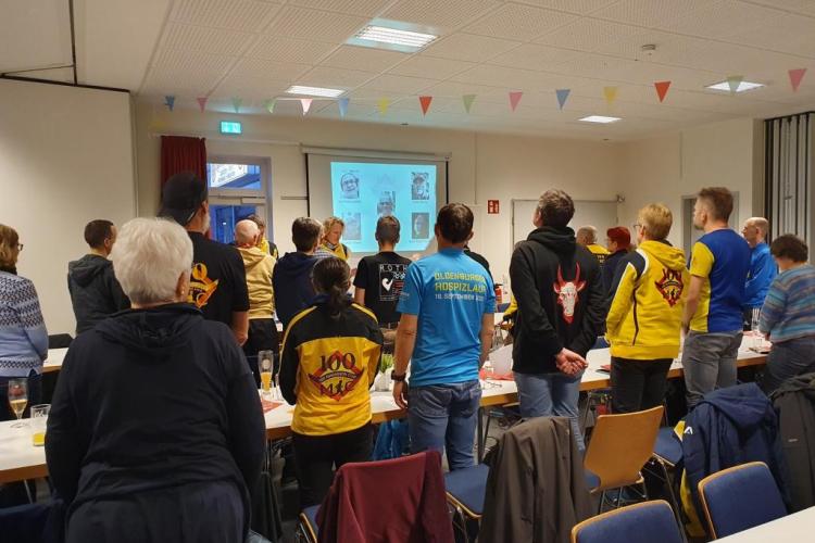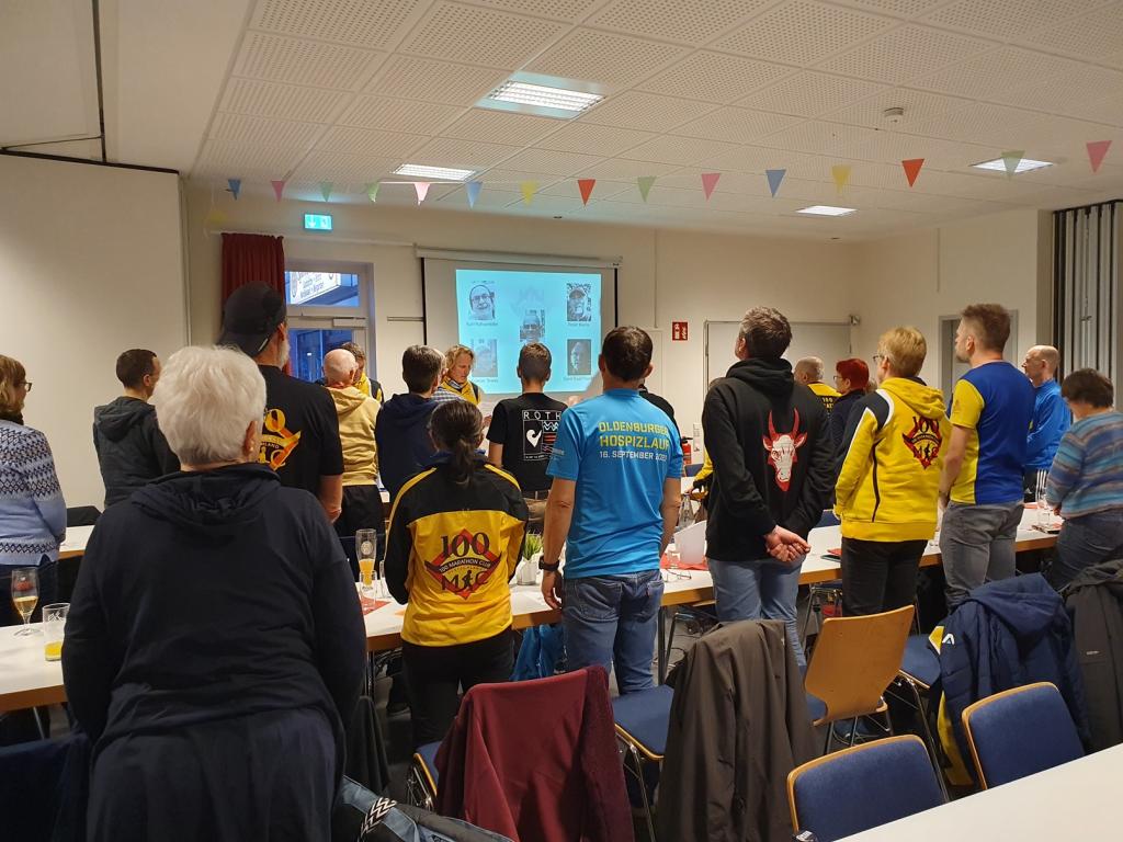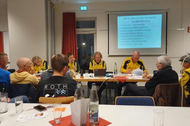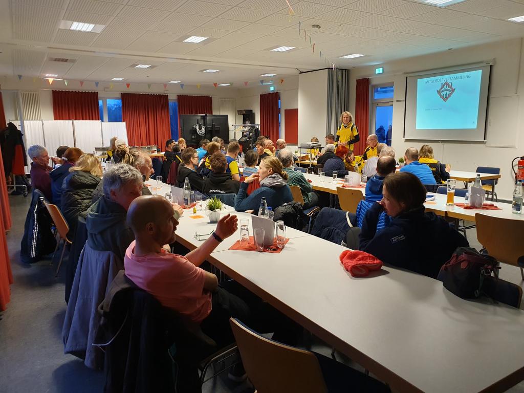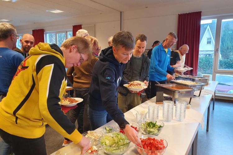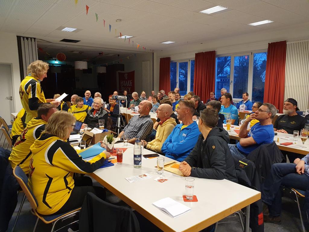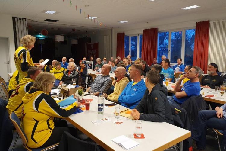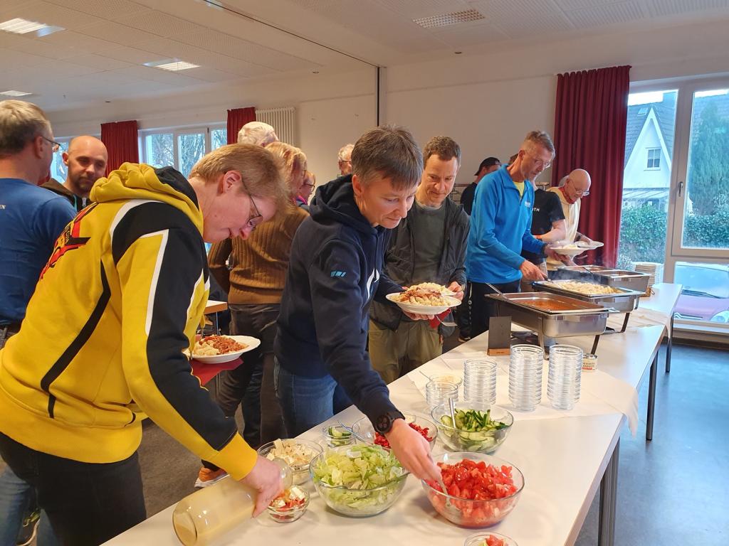 Auch die Jahreshauptversammlung war die bisher größte mit über 40 Mitgliedern und Gästen. Ab 17 Uhr gab es im Vereinsheim der SG Marßel-Bremen für alle Anwesenden eine Pasta-Party. Danach eröffnete Mario Sagasser (1. Vorsitzender) die Sitzung und begrüßte neben den Mitglieder und Gästen die drei anwesenden Ehrenmitglieder Sigrid Eichner, Hans-Joachim Meyer und Doris Sagasser.
