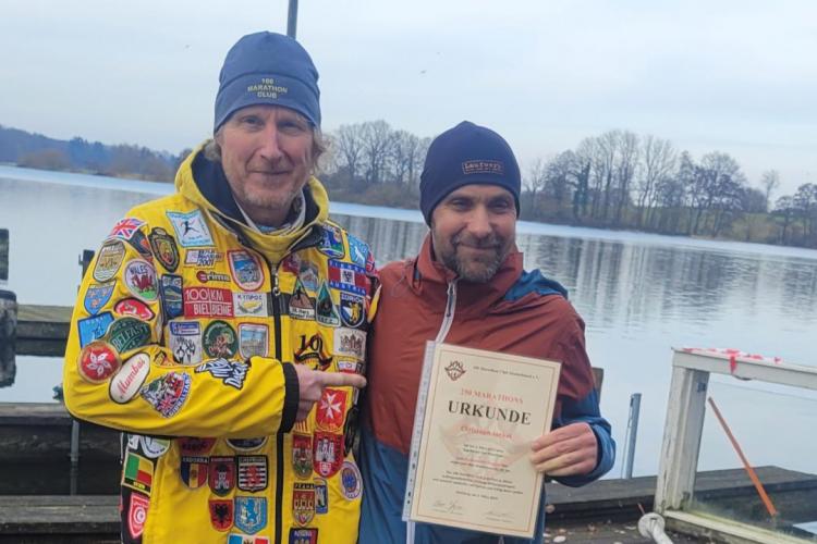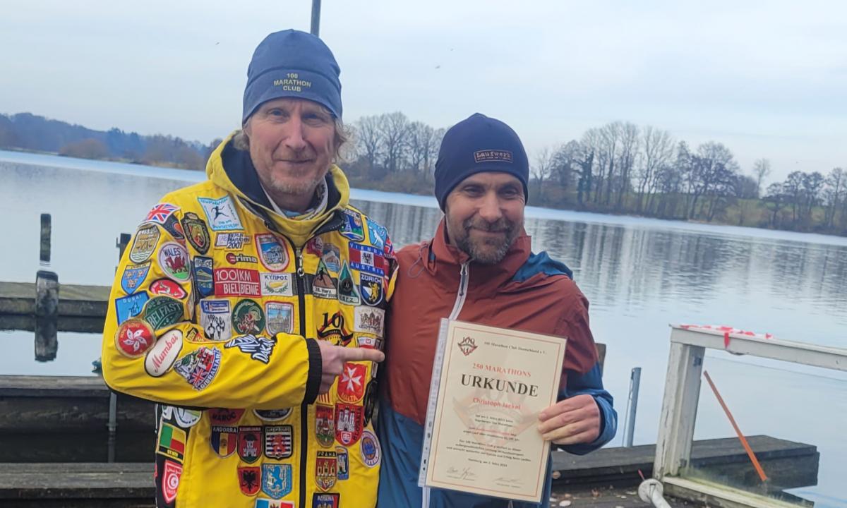 100MC Mitglied Christoph Jaekel aus Hamburg ist am Samstag, 2. März 2024 beim Segeberger-See-Marathon zum 250. Mal über mindestens die Marathondistanz gelaufen.