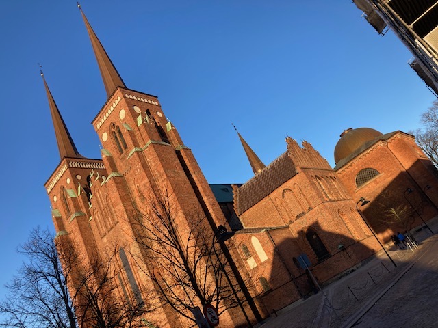 Harald Blauzahn (nach dem ist übrigens der Funkstandard Bluetooth benannt), der als erster König ganz Dänemark unter einer Krone vereinen konnte, soll 985 eine Kirche in Roskilde gestiftet haben. Mit dem Bau des heutigen Doms begann man aber erst im 12. Jahrhundert. Es wurde die erste, gotische Backsteinkirche Dänemarks. Hier werden seit 1559 alle dänischen Monarchen bestattet.