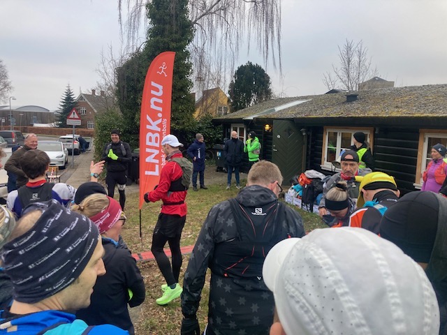 Ab 6:30 Uhr ist zum Frühstück und Abholung der Startunterlagen in ein Pfadfinderclubheim geladen. Alles problemlos, top vorbereitet und liebevoll gemacht. Startnummer angepinnt, mit Kaffee, Brötchen und leckerem Süßgebäck gefrühstückt. Außerdem deponiere ich meinen DropBag. Um 7:20 Uhr geht es raus, vor das Haus, dort liegt eine elektronische Zeitmessmatte. Hier gibt es erst noch ein Briefing, allerdings nur auf Dänisch, so dass ich nichts verstehe.