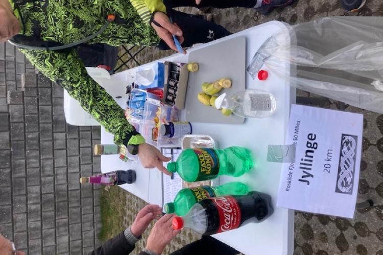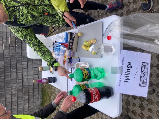 Am VP4 km41/Skuldelev gibt es zusätzlich Gels und Riegel, sowie wirklich heiße Tomatensuppe. Lecker und tut gut. Wir werden auch aufgefordert uns gut einzudecken, bis zum nächsten VP sind es 16 km.