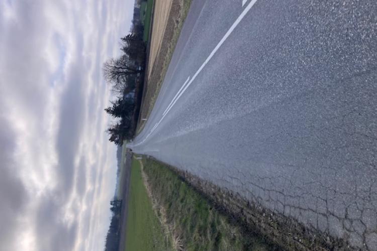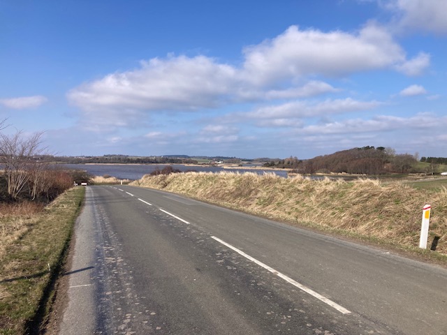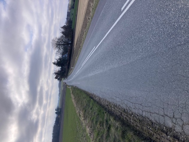 Das sind dann sehr wenig befahrene, kleine Landstraßen, die sich durch das hügelige Gelände ziehen. Die Sonne kommt zwar raus, aber der Ostwind ist richtig fies. Die Straßen ziehen sich, lassen sich dafür aber sehr gut laufen. Kirchen und Herrenhäuser sorgen für etwas Abwechslung.
