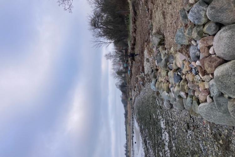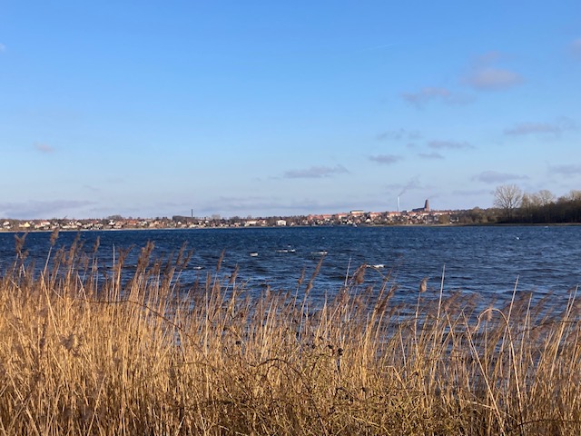 Pünktlich um 7:30 Uhr werden wir auf die Strecke geschickt. Es ist jetzt schon kalt, ein ganz fieser Ostwind. eigentlich sind die Temperaturen gar nicht so dramatisch, leicht über dem Gefrierpunkt, aber der Wind wird mich noch mürbe machen. Wir laufen an der Marina aus Roskilde heraus und dann gleich Richtung Norden. Nett angelegte Radwege, ein Stück Landstraße und traumhafte Wanderwege, ein ganzes Stück am steinigen Strand lang.