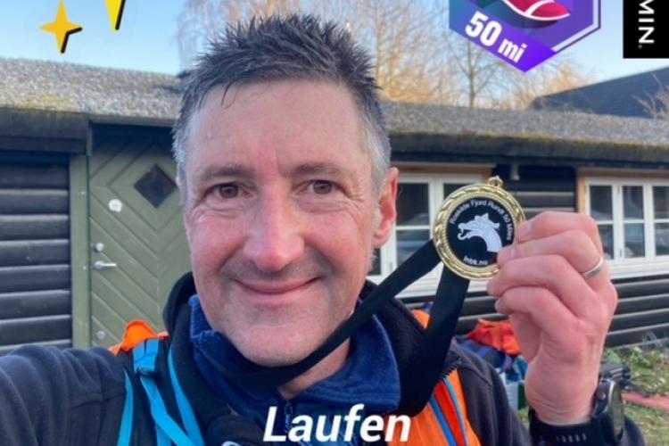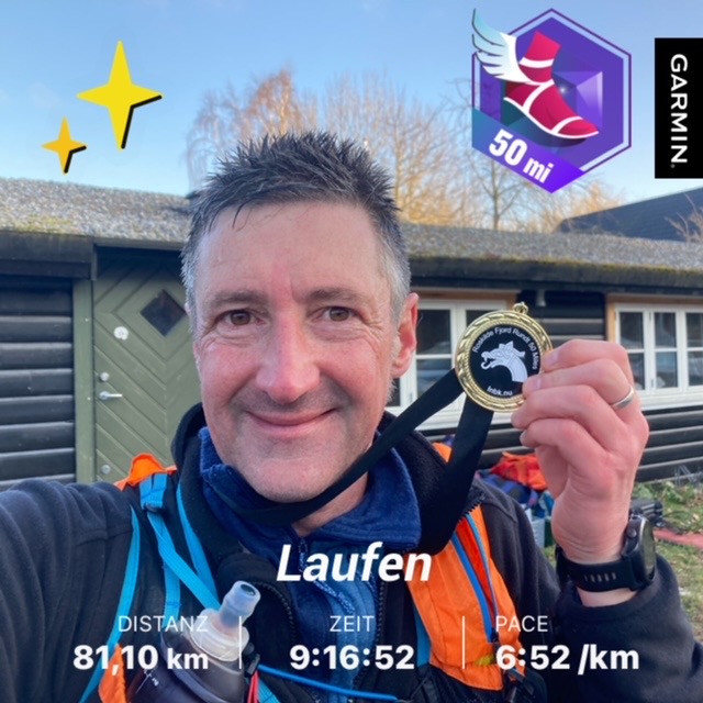 Dann endlich der letzte VP7 km74/Kattinge Værk, übersetzt der Google Translator mit „Katzen funktionieren“! Ich weiß jetzt auch nicht?! Jetzt geht es noch durch einen etwas mystischen Wald, sehr trailig, immer in Sichtweite vom Fjord. Auf diesem Stück begleitet mich ein dänischer Läufer, für den es die längste Strecke ist, die er jemals gelaufen ist. An der Marina schließt sich der große Kreis ⭕️ und es geht nur noch 500 Meter zum Ziel. Ich lasse meinem dänischen Laufpartner den Vortritt, das erste Mal 50 Meilen zu finnischen, muss ja belohnt werden.