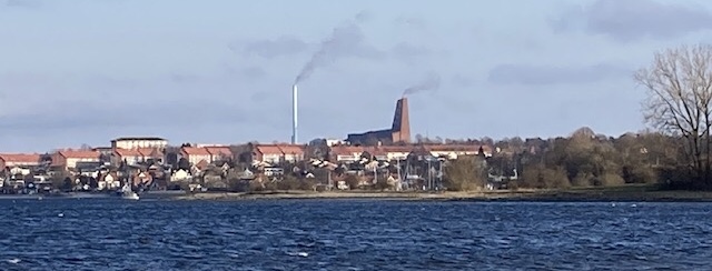 Und dann ist da noch das gigantisch Heizkraftwerk/ Müllverbrennungsanlage zu erwähnen, welches die Stadtsilhouette prägt. Auf einem der Panoramabilder sieht und erkennt man das sehr gut. Dort kann man auch die Dimensionen erahnen. Die Bürger von Roskilde, waren nicht mit einem profanen Zweckbau in Industrieoptik einverstanden. So entstand eine moderne Sehenswürdigkeit. Das Bauwerk, nach einem Entwurf des holländischen Architektens Erick van Egeraat, ist mit perforiertem Eisen verkleidet. Aus den unzähligen Löchern leuchtet die Hülle des Nachts wie ein Sternenhimmel. Schornsteine sind nicht als solche erkennbar, sondern Türme, insgesamt wirkt es eher wie ein großer Wohnkomplex. Als eine Industrieanlage ist es von weitem nicht zu erkennen. Fenster sind eingebaut, nachts beleuchtet.