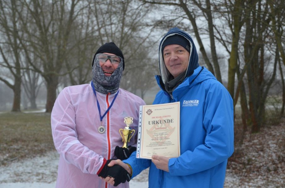 Liebe Sylke, vielen Dank für das tolle Event. Mein Jubiläum hätte ich so bei keinem Major-Marathon oder einer anderen Großveranstaltung erleben können! Trotz eisiger Kälte von -8 Grad, teils eisigem Wind und am Schluss leichtem Schneefall war es ein schöner Lauf, der viel Spaß gemacht hat.