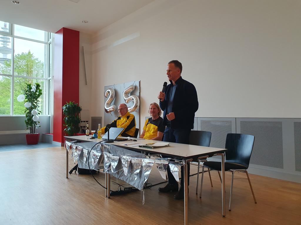 Dann übergab Mario das Wort an den Staatssekretär Christoph Holstein, der im Auftrag des Sportsenators der Freien Hansestadt Hamburg Grüße und Glückwünsche an den 100 Marathon Club Deutschland e.V. übermittelte. Im Anschluss hielt Mario, der nun seit gut zehn Jahren 1. Vorsitzender ist, eine Rede zur Entwicklung und den Errungenschaften unseres Vereins. Diese wird voraussichtlich im nächsten Clubheft abgedruckt werden.