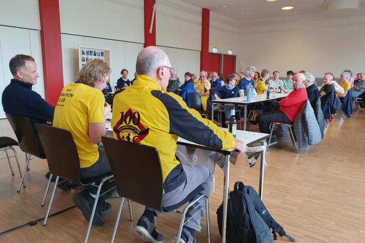 Kurz nach 16 Uhr setzten sich alle an die Tische. Vorne nahmen Mario Sagasser, Gerd Junker und Christoph Holstein Platz. Dann griff unser 1. Vorsitzender zum Mikrofon und hieß die Clubmitglieder und Gäste im Haus des Sports willkommen, wobei er die anwesenden Mitglieder, die seit Gründung des 100MC dabei sind, besonders hervorhob: Hans-Joachim Meyer (Mitgliedsnummer 2), Sigrid Eichner (Mitgliedsnummer 4), Rolf Frank (Mitgliedsnummer 6), Patrik Schmidt (Mitgliedsnummer 9) und Rene Wallesch (Mitgliedsnummer 12).