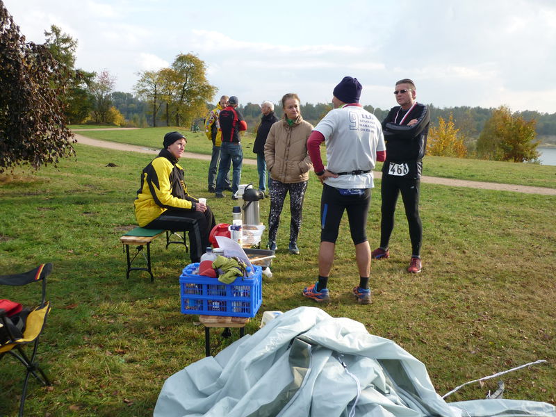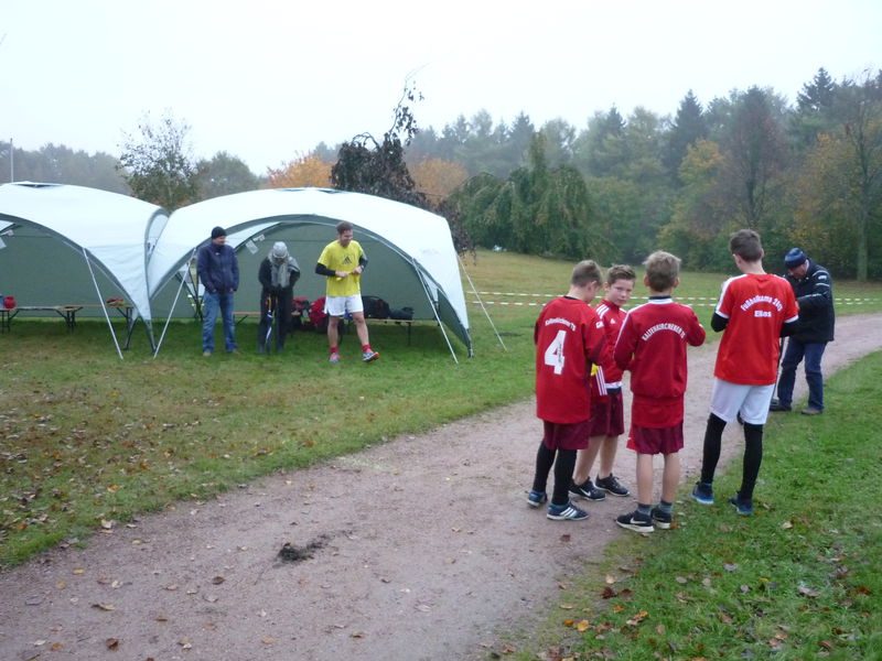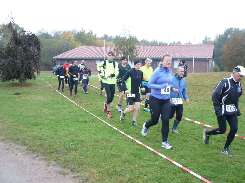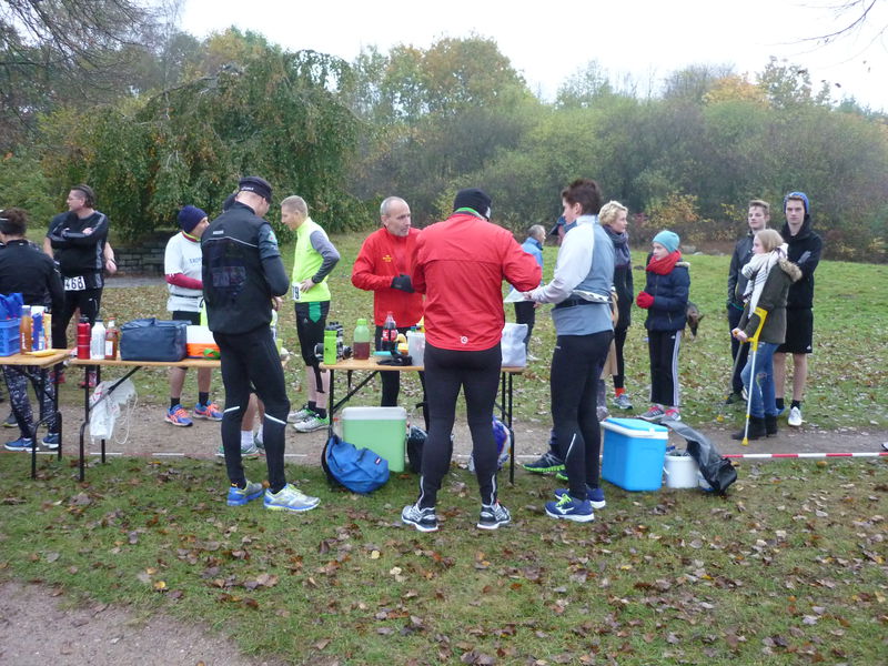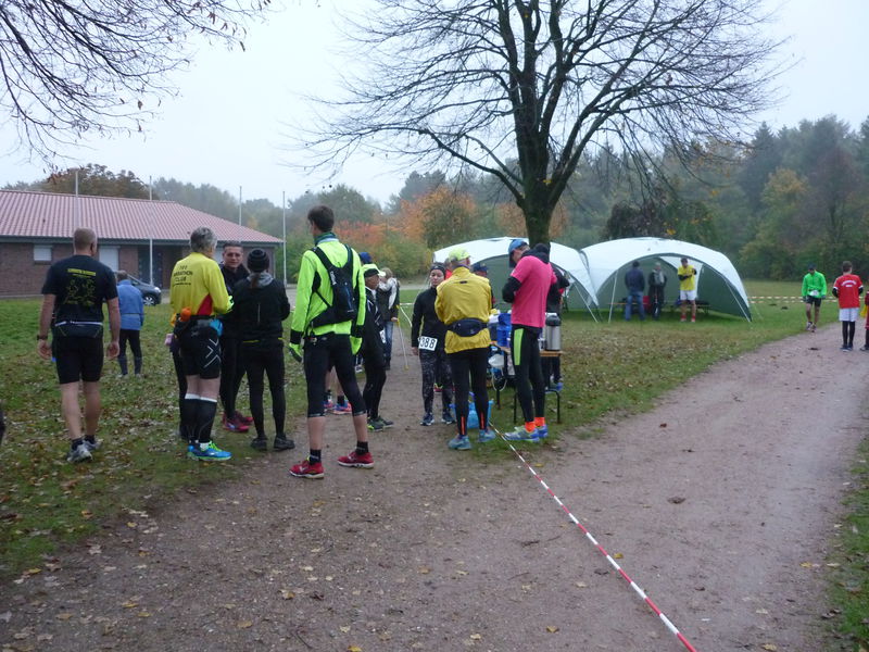 Am Veranstaltungstag wurde dann ab 7 Uhr aufgebaut (3 Pavillons/Tische/Stühle/Uhren etc.). Die erste halbe Stunde war es dabei noch sehr dunkel. Ab 8 Uhr trafen dann die ersten Teilnehmer ein, um ihre Startnummer abzuholen und die 7 Euro Startgebühr zu zahlen. Tische standen für die benötigte Eigenverpflegung bereit. Von den insgesamt 39 Meldern erschienen 30 zum Start. Als um kurz nach 9 Uhr der Startschuss fiel, setzten sich auch noch fünf Staffeln in Bewegung. Während eine Staffel von der Großfamilie Gröhn gestellt wurde, brachte Quentsch Bruder Quentsch drei Staffeln mit Spielern seiner zwei D-Jugend Fußballmannschaften der Kaltenkirchener Turnerschaft an den Start. Die fünfte Staffel bestand aus Eltern der D-Jugend Spieler.