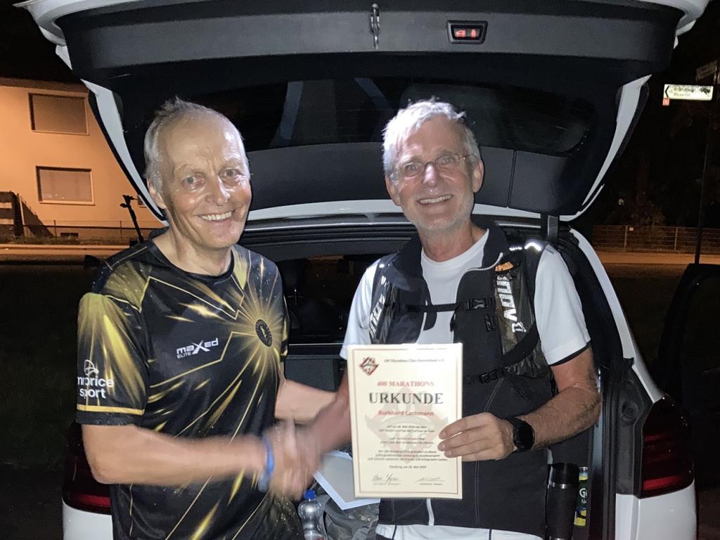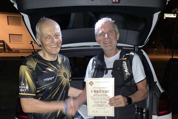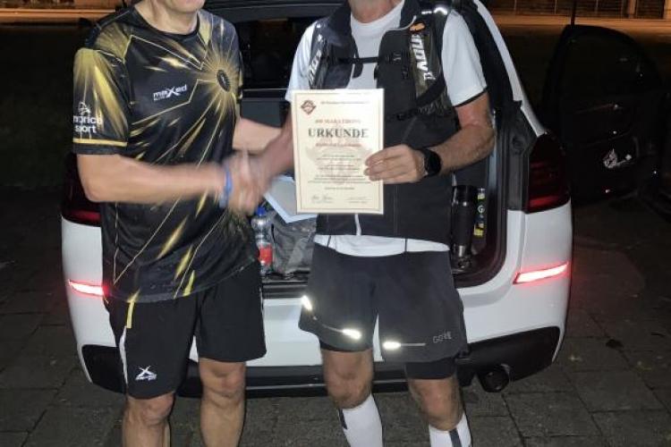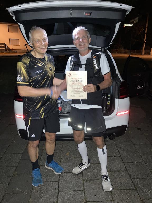 Die nachträgliche Ehrung übernahm Jürgen Haschen mitten in der Nacht beim „Lauf durch die kurze Nacht“ beim Kasseler Fuldaufermarathon.