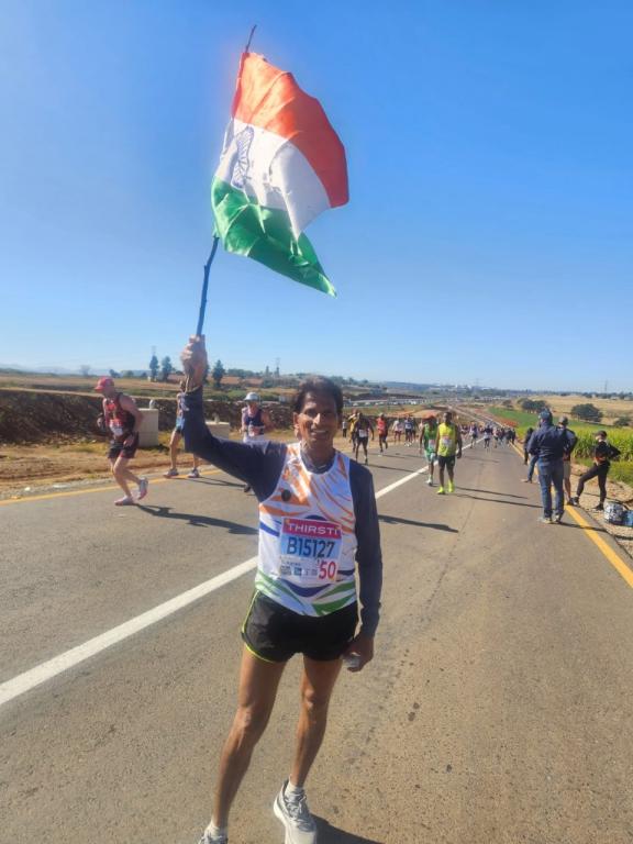 Den weltberühmten Ultramarathon in Südafrika schaffte Tukaram in einer Zeit von 9:31:30 Stunden.