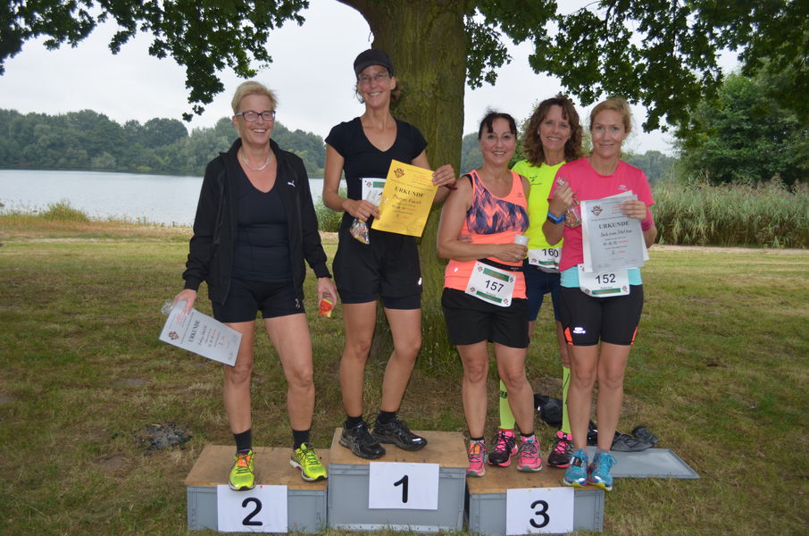 ...aber nun haben wir´s: Evelyn (2. in 2:18:15), Marion (Siegerin in 2:12:10) sowie Angela, Petra und Sabrina (gemeinsam 3. in 2:22:56)