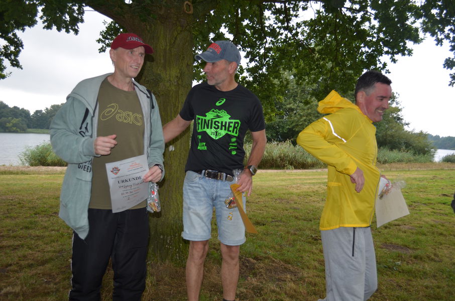 Siegerehrung der Männer im Marathon: Wolfgang ( 2. in 3:44:32 ) , Sven ( Sieger in 3:27:40 ) und Carsten ( 3. in 3:50:41 )