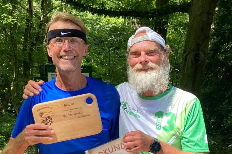 Bennie sammelt zurzeit leidenschaftlich "Zähler" - sein 700. (Ultra-)Marathon wurde an Silvester 2023 gefeiert, sein 750. (Ultra-)Marathon Mitte April 2024 in Bremen. Eine sehr sportliche Leistung, die jedoch einen Grund hat: Der Niederländer hat sich zum Deutschlandlauf Ende Juli angemeldet und möchte bis dahin so viele Kilometer laufen wie nur möglich. Unterstützt wird dieses Vorhaben von seinen Lauffreunden im norddeutschen Raum.