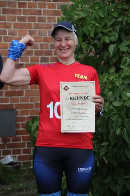 natürlich auch von mir herzlichen Glückwunsch zur Nr. 100! Nachdem du am 27.11.2022 beim 6. Kaltenkirchener Adventmarathon (ich glaube, es war damals dein insgesamt 22. Marathon/Ultra) auf den Haufen der „Verrückten“ gestoßen bist, hast du ein hohes Tempo bei deinen Marathonteilnahmen bis zur Nr. 100 hingelegt. Leider konnten die Hasse und der Quentsch nicht an deinem Jubiläumslauf teilnehmen, da wir uns an dem Tag in Beverstedt-Wellen über die 42,195 km schleppten. Wir sehen uns aber am 18.08. in Kiel-Holtenau, wenn der nächste Schleswig-Holsteiner seinen 100. Marathon/Ultra laufen wird.