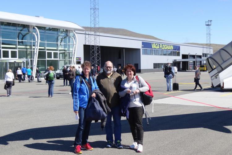 Nach der Anreise mit dem Flieger via Kopenhagen (dort trafen wir bereits auf Jürgen Kuhlmey!) erlebten wir das genaue Gegenteil. Die Sonne schien und es war frühsommerlich warm. Mit dem Leihwagen wurden 3 Tage die Inseln erkundet und an besonderen Orten immer wieder Besichtigungen und Spaziergänge eingefügt. Es gibt sehr viele Schafe, die Inseln sind teilweise durch einspurige Tunnel (mit in den Fels gesprengten Ausweichbuchten für die wartepflichtigen Fahrzeuge) verbunden, jeder Ort hat eine eigene Kirche und jeder Hauptort (der bewohnten Inseln) hat einen Kunstrasenfussballplatz.