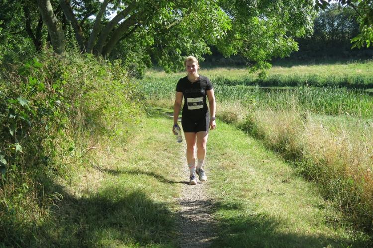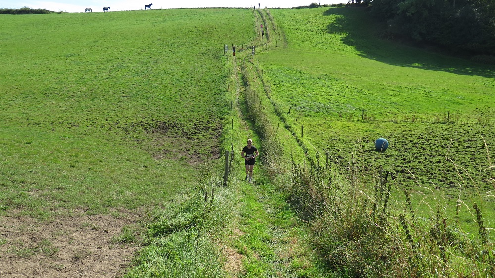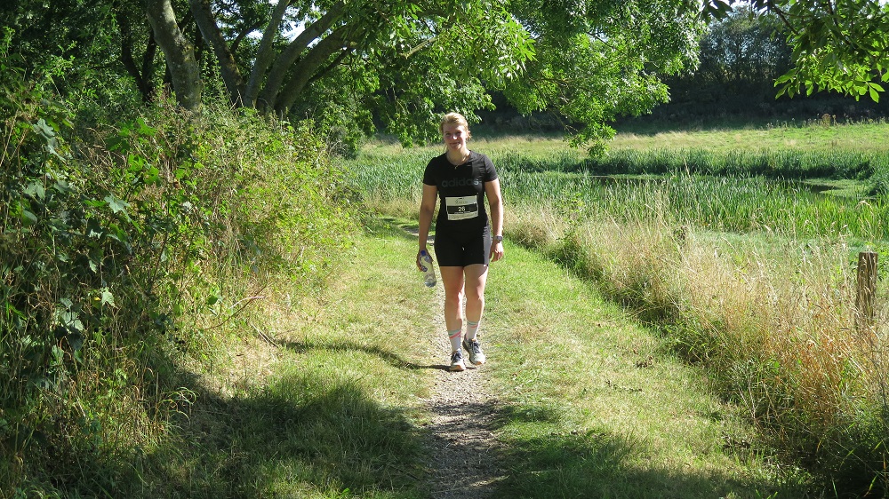 Jaqueline bei ihrem 44. Marathon/Ultra und der Quentsch liefen und gingen eine für ihre Verhältnisse recht flotte erste Runde und waren so mit der Zwischenzeit natürlich zufrieden, denn die Strecke hatte wie erwartet so einige Schwierigkeitsgrade. Nachdem die Halbmarathonläufer im Ziel waren, wurde es in Runde 2 dann doch etwas langweilig. Nachdem eine Läuferin die beiden Deutschen gleich zu Beginn der zweiten Runde überholt hatte und sich schnell entfernte, tat sich von der Positionierung gar nichts mehr. Die beiden Deutschen schleppten sich mühsam mit der Taktik Steigung gehen, Gefälle laufen, flache Abschnitt je nach körperlicher Verfassung laufen oder gehen, über die wellige Strecke und erreichten gemeinsam auf Platz 35 von 39 Marathonläufern nach 5:40:32 Stunden das Ziel. Zur Überraschung waren doch tatsächlich noch drei dänische Teilnehmer hinter den beiden Deutschen und alle Teilnehmer unter der Sollzeit von 6 Stunden.