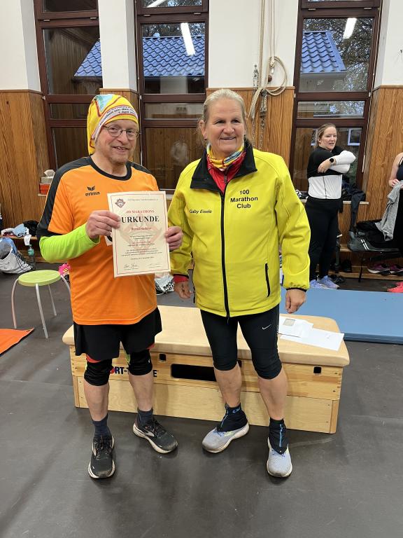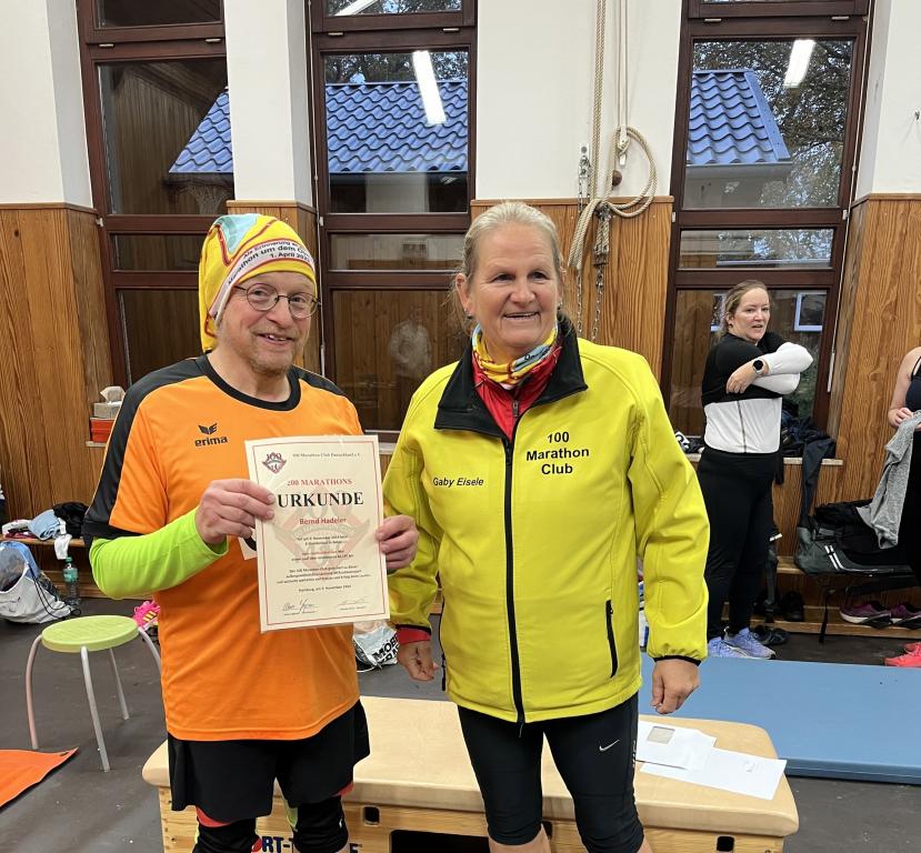 100MC Mitglied Bernd Hadeler aus Bremervörde ist am Samstag, 9. November 2024 zum 200. Mal über mindestens 42,195 Kilometer gelaufen.
