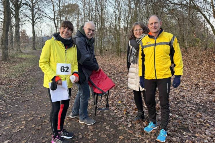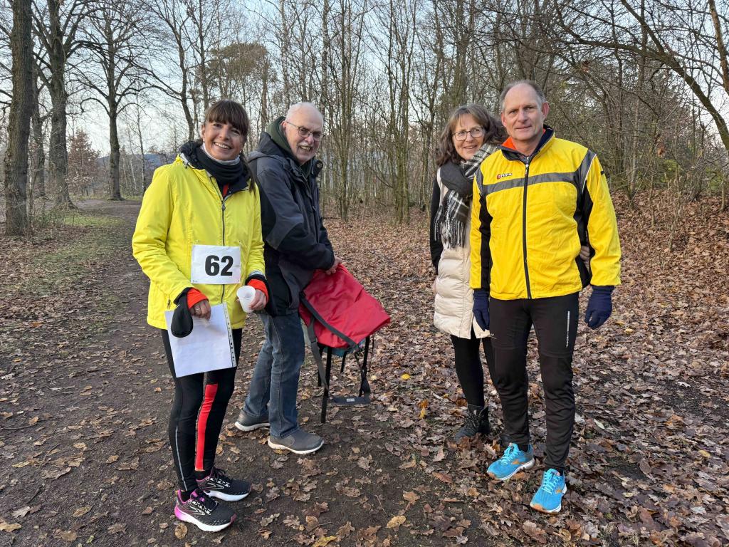 Erika im Ziel, mit ihr freuen sich Till, Christiane und Arne!