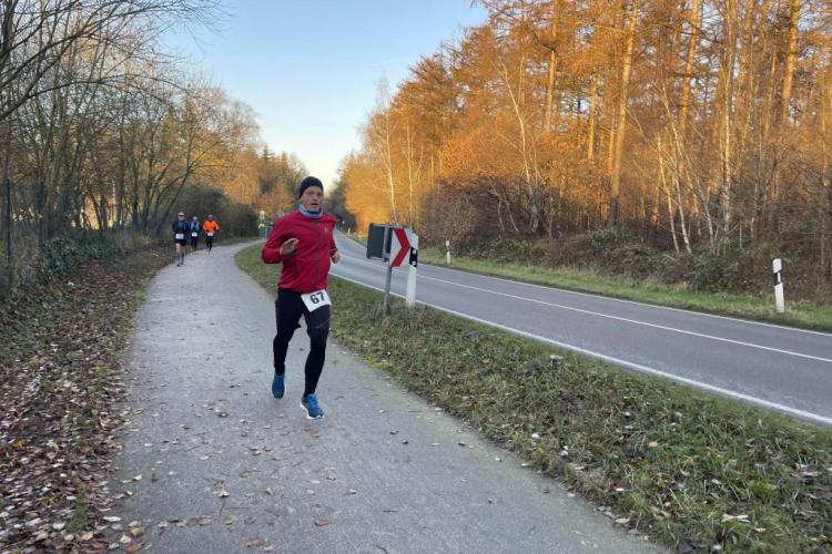Veranstalter Arne mit den 8 Uhr Frühstartern, ...