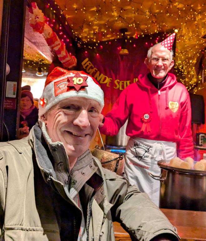 Er hat sich dafür den Run2Feuerzangenbowle ausgesucht. Ein von ihm organisierter Spenden-, Gruppenlauf über nicht ganz 50 Kilometer. Mit einem Fußmarsch vom Schwimmbad in Wolfenbüttel zu Hajos Feuerzangenbowle-Stand werden am Ende die 50 km voll gemacht.