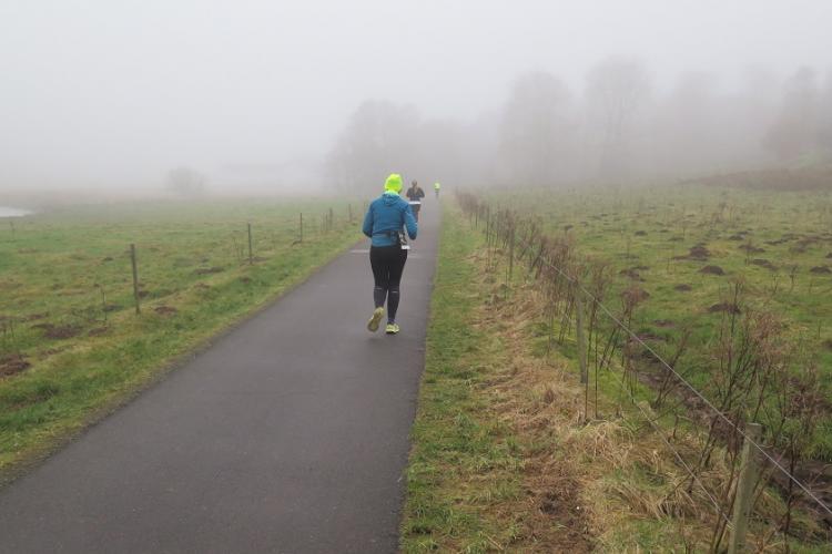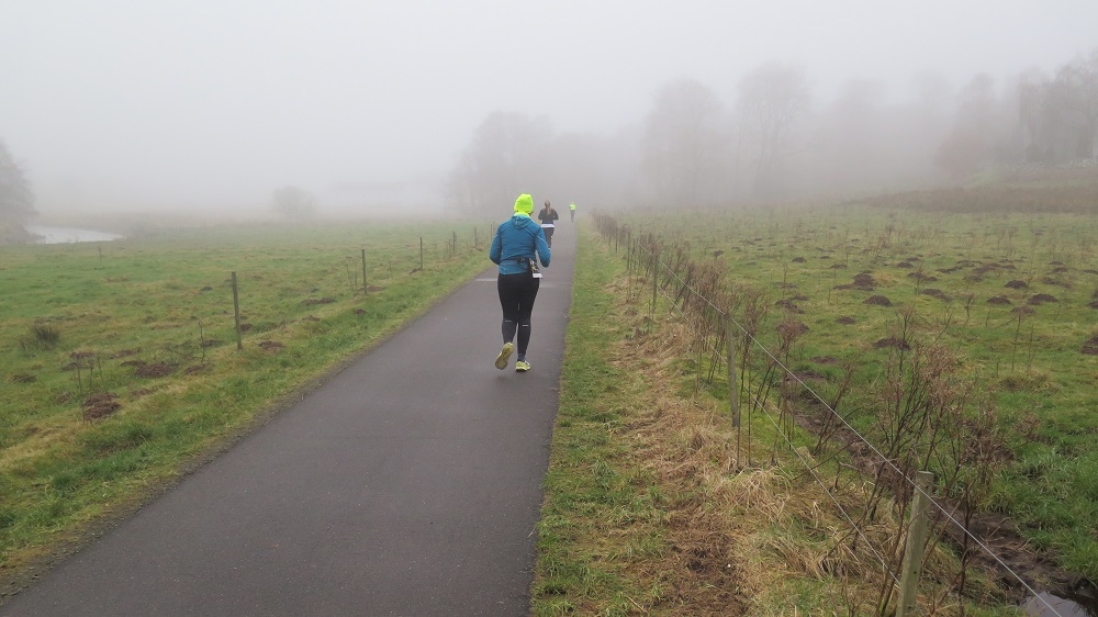 Die Temperatur pendelte zwischen 0 und 3 Grad und es war neblig und fast durchgehend bewölkt. Die Windgeschwindigkeit lag nur bei 2 bis 5 Kilometer pro Stunde. Also ein ideales Wetterpaket für ein 42,2 km Läufchen.