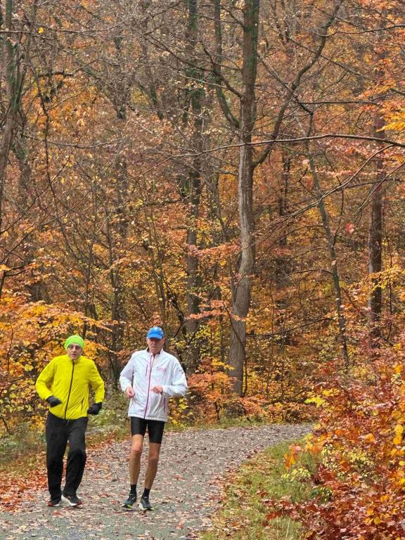 Heute in Stuttgart-Vaihingen starten wir beim Kindergarten „Am Wallgraben“ bei regnerischem Novemberwetter zu siebt, mit individueller Startzeit. Jede der Runden hat ordentlich Höhenmeter (185). Es geht zuerst über eine imposante Brücke, auf 2 Etagen, unten der Autoverkehr – und über deren Überdachung - Fußgänger und Radler über das Nesenbachtal gelangen können. Und natürlich wir Läufer. Nach ein paar Kilometern taucht die Strecke über einen Singletrailabschnitt in den noch herbstlich belaubten Wald ein. Unterbrochen von Kaltental, einem Stuttgarter Teilort, der tief in den Talkessel eingeschnitten ist. Bevor es wieder steil bergauf durch die Schwälblesklinge geht. Wohl der schönste Streckenabschnitt – heute durch das feuchte Laub ein bisschen Tricky. Dann nähert man sich den ersten Häusern von Vaihingen und ist - entlang einiger Schrebergärten und Felder - schon bald zurück am Parkplatz, um die nächste Runde zu starten.