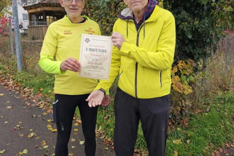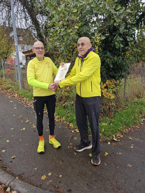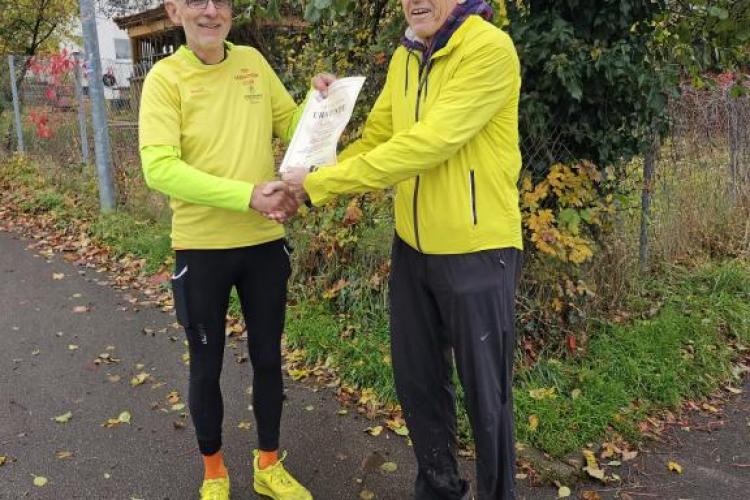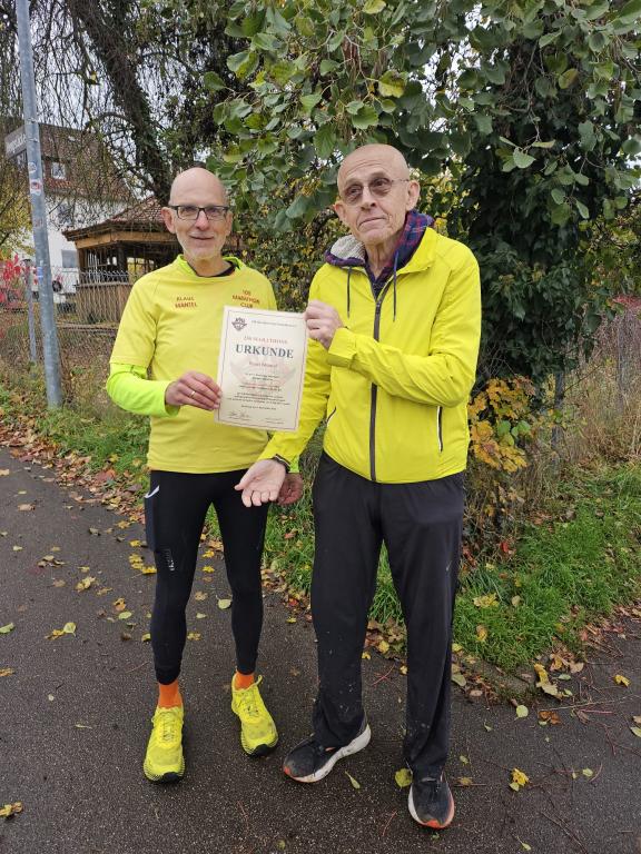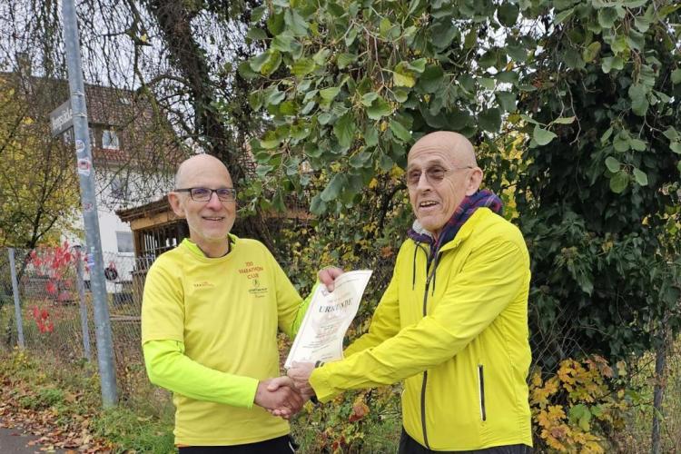 100MC Mitglied Klaus Mantel ist am Sonntag, 2. November 2025 beim Vaihingen Marathon zum 250. Mal über mindestens 42,195 km gelaufen.