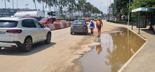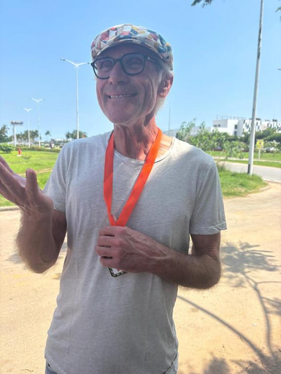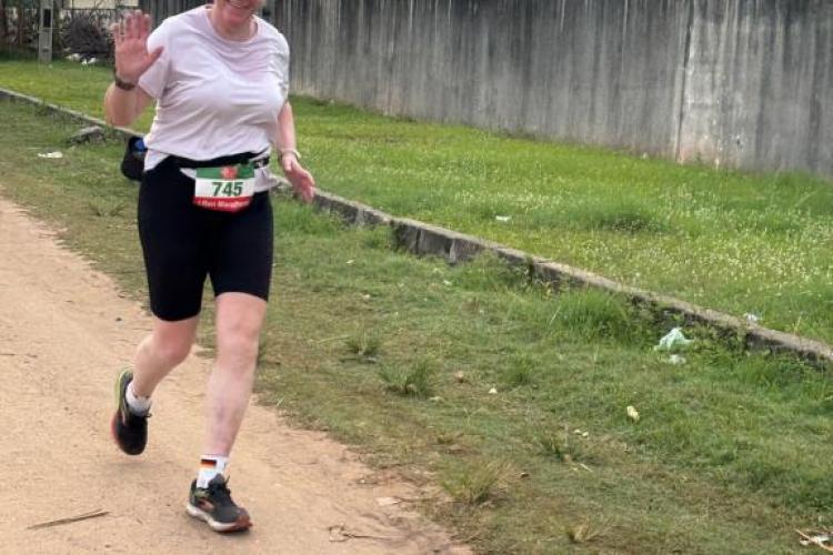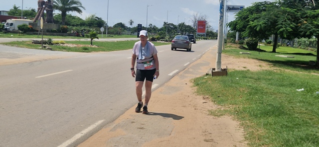 Am nächsten Morgen war durch die frühe Startzeit noch nicht zu viel Verkehr auf den Straßen, so dass die Läufer in den ersten Stunden relativ „ungestört“ laufen konnten. Später am Tag nahm der Verkehr zu, so dass mehr Aufmerksamkeit geboten war, sich zwischen Fußgängern, Rad- und Mopedfahrern, Autos und LKWs zu manövrieren. Durch die nun höheren Temperaturen wurde die Laufgeschwindigkeit automatisch reduziert, allerdings nahm durch die Erschöpfung auch die Aufmerksamkeit ab. Außerdem trocknete der Sand auf den Wegen und der Staub auf den Straßen, dass man rechtzeitig das Mundtuch hochzog und die Sonnenbrille aufsetzte, um nicht den „Dreck der Straße“ in Mund, Nase und Augen zu bekommen. Die Leute ließen uns zufrieden, die Straßenverkäufer verdienten an dem ein oder anderen Spontankauf eines Läufers, der sich mit einem Kaltgetränk motivieren wollte. Nach 5 ½ bis 9 Stunden war es für alle vorbei – ausgestiegen ist keiner. Durch die kurzen 1,5 Kilometer-Runden gab es diverse Begegnungen, die immer wieder für einen kurzen Plausch oder Anfeuerung genutzt wurden.