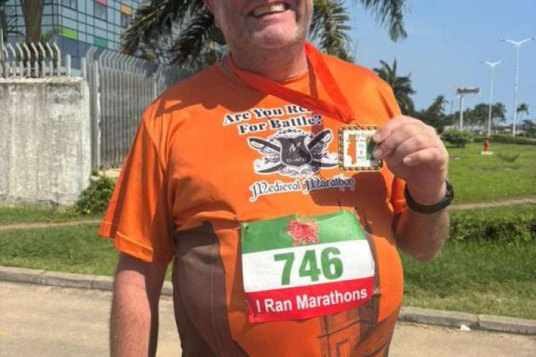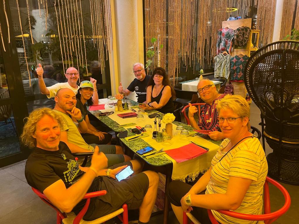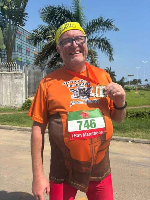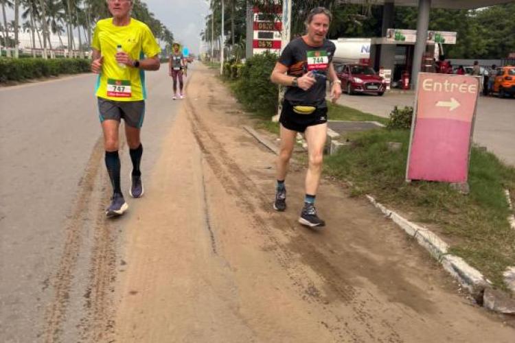 Per Whatsapp rief die Veranstalterin vom Teheran Park Marathon auf, an eine Reise nach Äquatorial-Guinea und Nigeria noch Marathonläufe in der Elfenbeinküste und dem Senegal folgen zu lassen. Da wir die ersten beiden und das letzte Land schon kennen, haben wir uns nur für die Elfenbeinküste angemeldet. Unsere Clubmitglieder Thomas G. und Dieter E. wollten ebenfalls dabei sein. So trafen wir uns also an einem Donnerstag Mittag auf dem Pariser Flughafen, um gemeinsam nach Abidjan, der früheren Hauptstadt der Elfenbeinküste zu fliegen. Immer noch die größte Stadt des Landes und am Golf von Guinea gelegen. Im Flieger trafen wir auf den Franzosen Didier, mit dem wir schon so manchen exotischen Marathon gelaufen sind. Nachdem wir die Immigration erledigt hatten, ging es mit dem Hotelbus ins Hotel, um schnell noch ein Abendessen im Restaurant zu genießen.