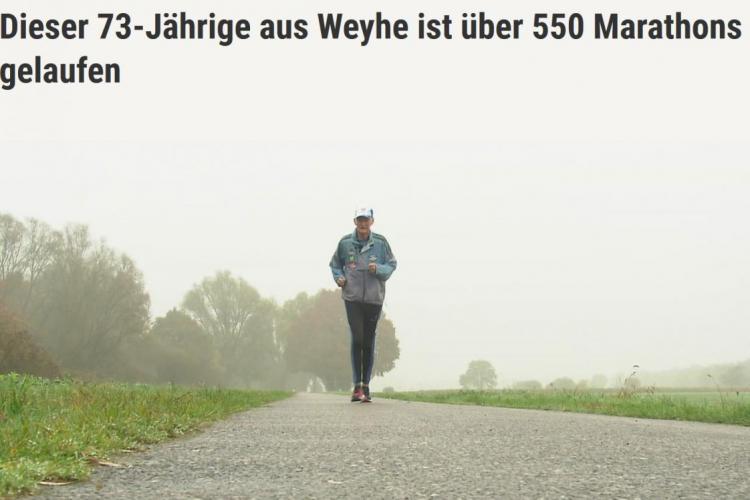 "Karl-Wolfgang Baumgarten hat schon 553 Marathon- und Ultraläufe hinter sich. Mit dem Laufen aufzuhören kommt für den 73-Jährigen nicht infrage."