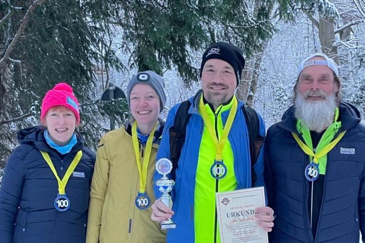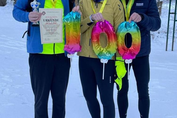Sven wollte an seinem Jubiläumstag kein großes Trara und entschied sich erst ein paar Tage vorher für die Festlegung seiner Nummer 100. Anfang Januar 2026 wurde nun die Foto-Session im Schnee inkl. Urkundenübergabe in Bremen nachgeholt.