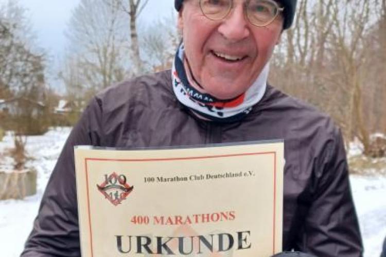 100MC Mitglied Rolf Graubner lief am Sonntag, 14. Dezember 2025 zum 400. Mal über mindestens 42,195 Kilometer.