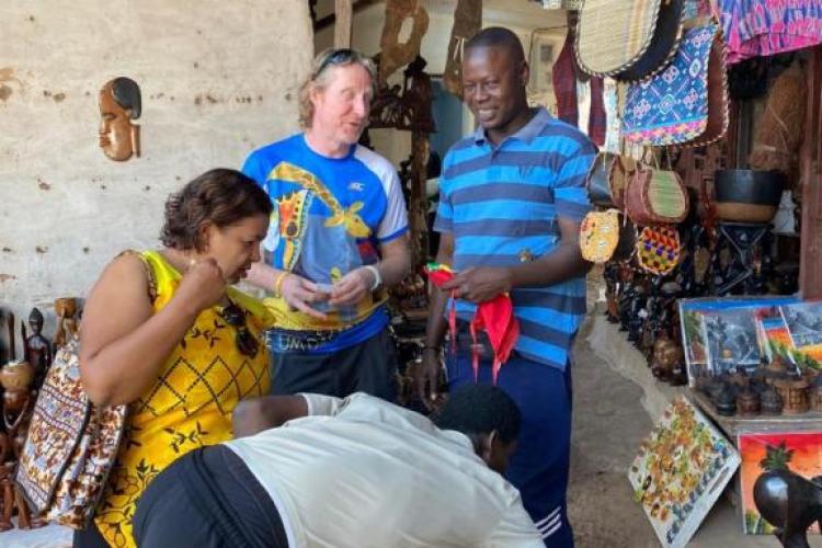 Unsere nigerianische Lauffreundin Dayo hatte die Idee, dass eine gemeinsame Medaille für die 4 Guineas: Guinea, Guinea-Bissau, Äquatorial-Guinea und Neu-Guinea eine coole Idee wäre. Darum hatte sie zum G2G (Guinea-Bissau und Guinea) aufgerufen. Wir folgten ihrem Ruf, wie noch 12 weitere Läufer und Läuferinnen. Da wir für Bissau eine Einladung benötigten, hat sie uns mit ihrem Kontakt zur örtlichen Tourismusbüro geholfen, so dass wir mit diesen Schreiben ausgestattet, die Reise antreten konnten. Das erste große Hallo gab es bereits in Lissabon, wo sich bereits 8 Läufer auf dem Flughafen trafen, um mit der portugiesischen TAP nach Bissau weiterzufliegen. Denn Guinea-Bissau war bis in die 60er Jahre eine Kolonie Portugals. In Bissau angekommen, holte uns Dayo mit einem Kleinbus ab und wir fuhren in das sehr zentral im Regierungsviertel gelegene Hotel. Da es schon später Abend war, rannten Thomas und ich sofort zum Supermarkt, um Getränke für den morgen früh angesetzten Lauf einzukaufen. Doris checkte derweil im Hotel ein und lauschte der Startbesprechung. Dort traf sie auf die restlichen Teilnehmer und Dayos Ehemann Gary, der bei der Reise und den Läufen unterstützte.